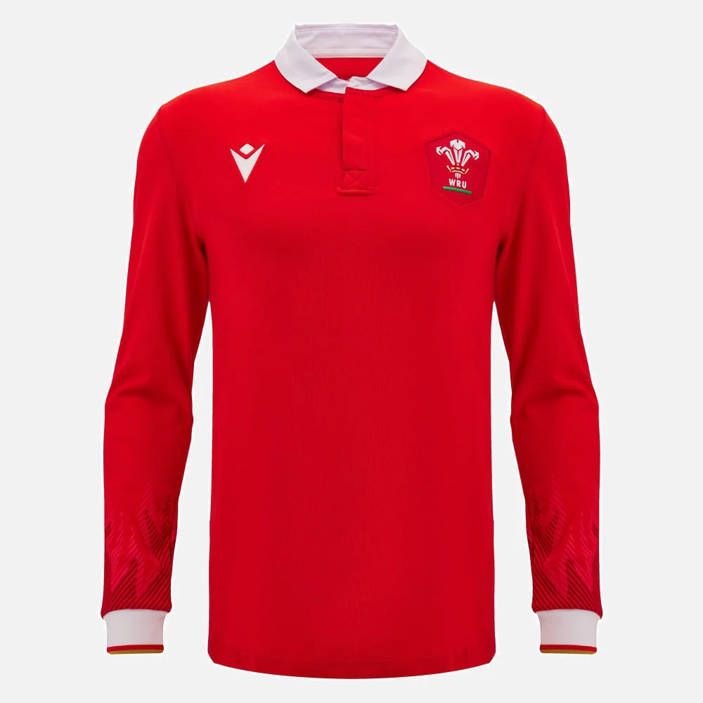 Maillot de rugby à manches longues Macron Pays de Galles extérieur en coton pour homme