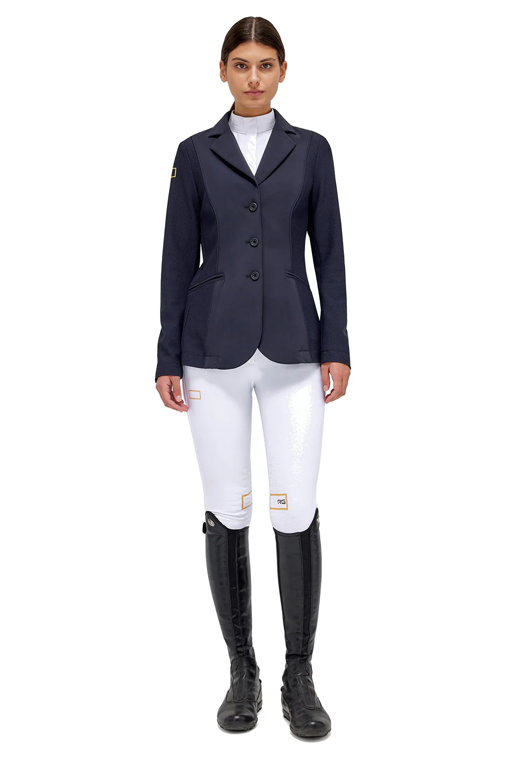 Veste de compétition RG à boutons pour femme, bleu marine