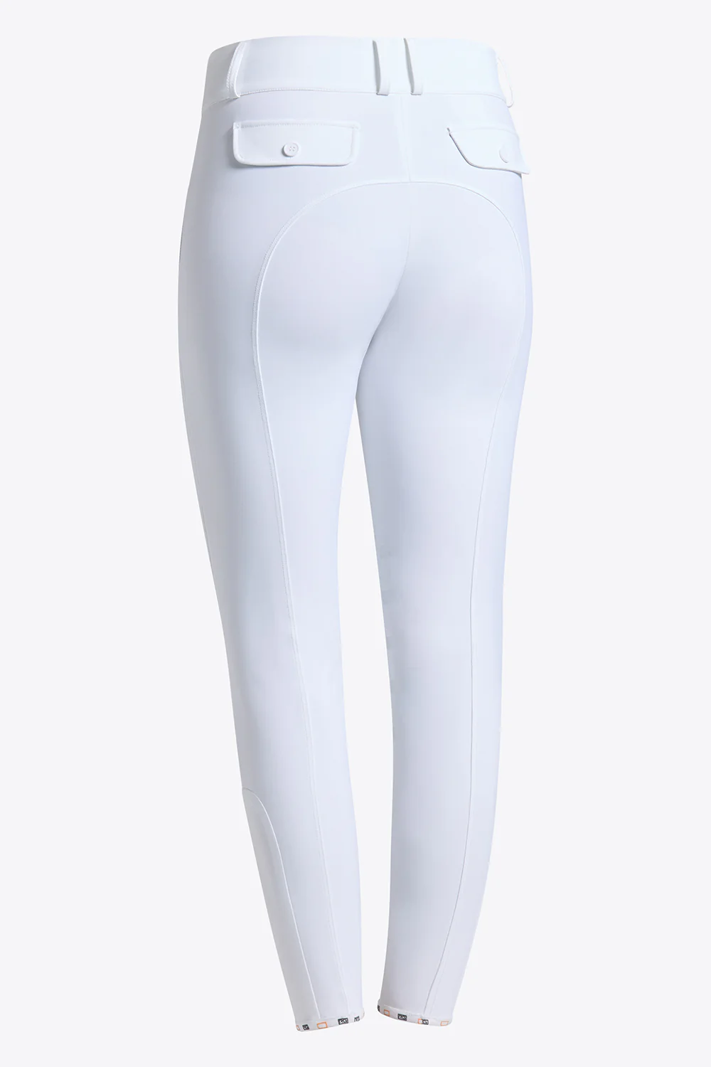 Pantalon d’équitation RG pour femmes avec grip aux genoux, taille haute, poches à rabat blanches