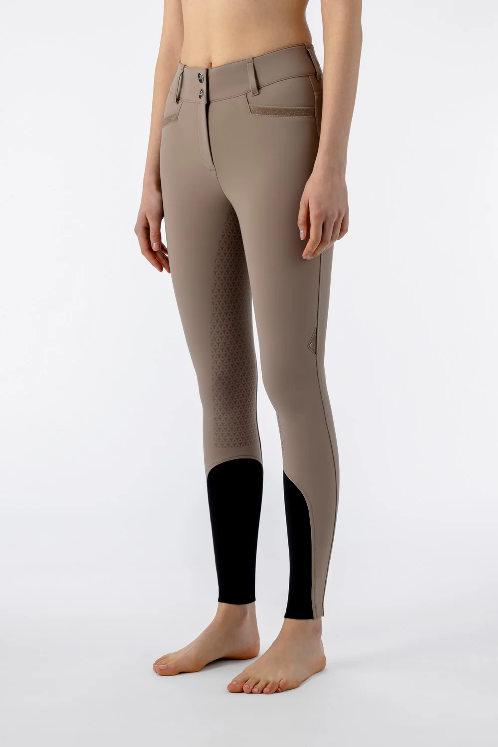 Pantalon d’équitation Equiline femme taille haute grip genoux Crystalek Taupe